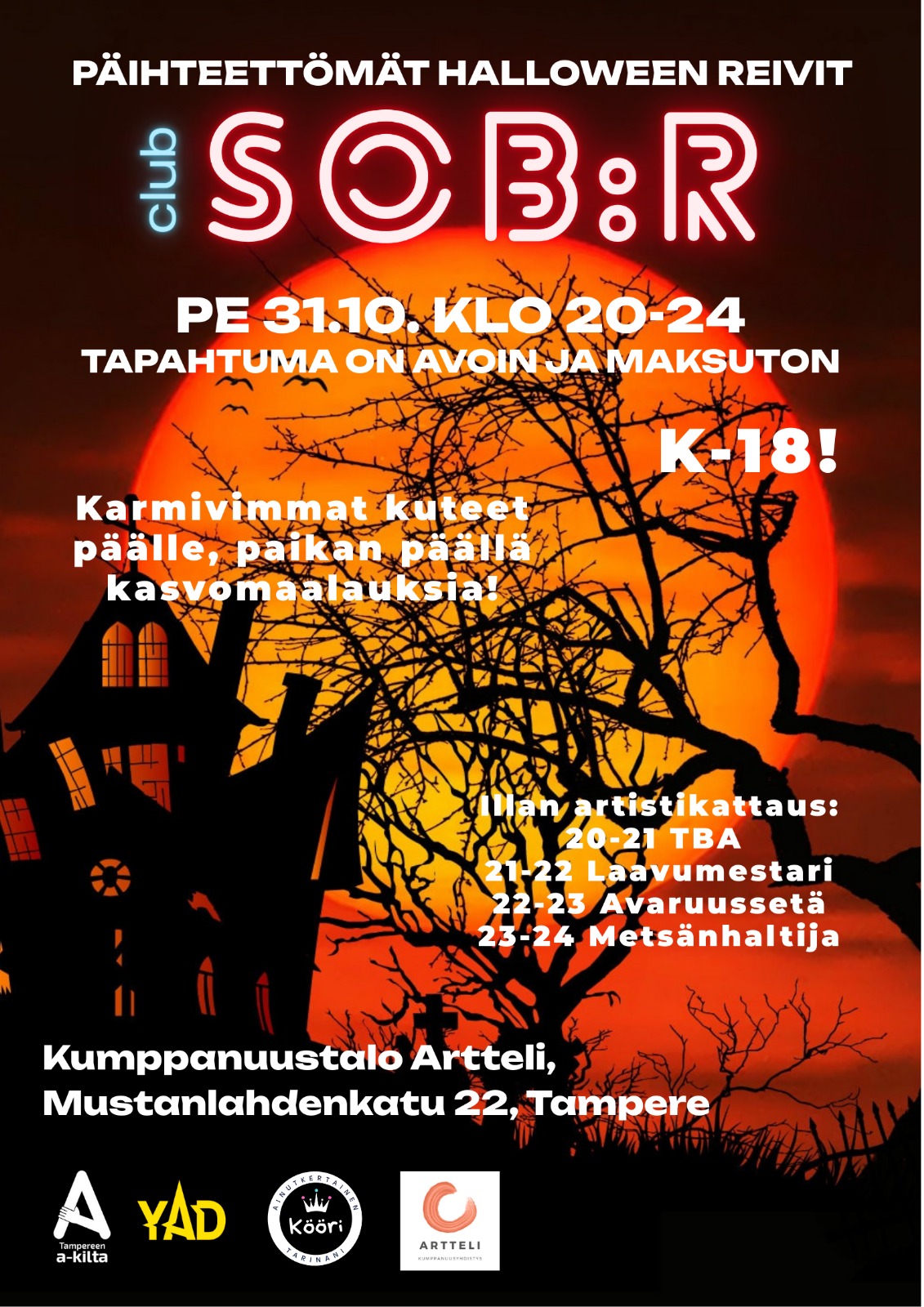 31.10.2025, CLUB SOB:R Päihteettömät reivit @ Kumppanuustalo Artteli, Tampere (FI) – Avaruussetä mental tekno dj set